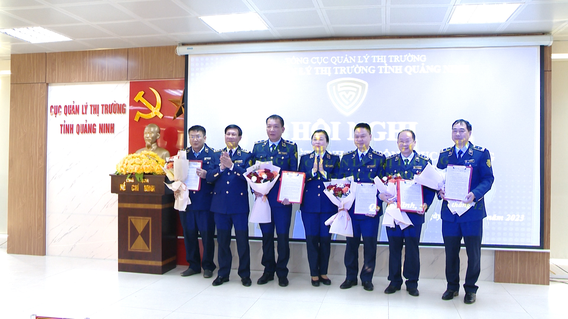 Tại Hội nghị Công bố quyết định về công tác cán bộ, Đồng chí Chu Thị Thu Hương – Phó Tổng cục Trưởng tổng cục Quản lý thị trường đã thay mặt Lãnh đạo Tổng cục trao 06 Quyết định điều động bổ nhiệm lãnh đạo các phòng, các đội thuộc cục QLTT tỉnh Quảng Ninh cho 06 đồng chí gồm Quyết định điều động, bổ nhiệm Trưởng phòng Nghiệp vụ Tổng hợp, Đội trưởng Đội QLTT số 4, Phó đội trưởng các đội QLTT số 1, QLTT số 3 và đội QLTT số 5.