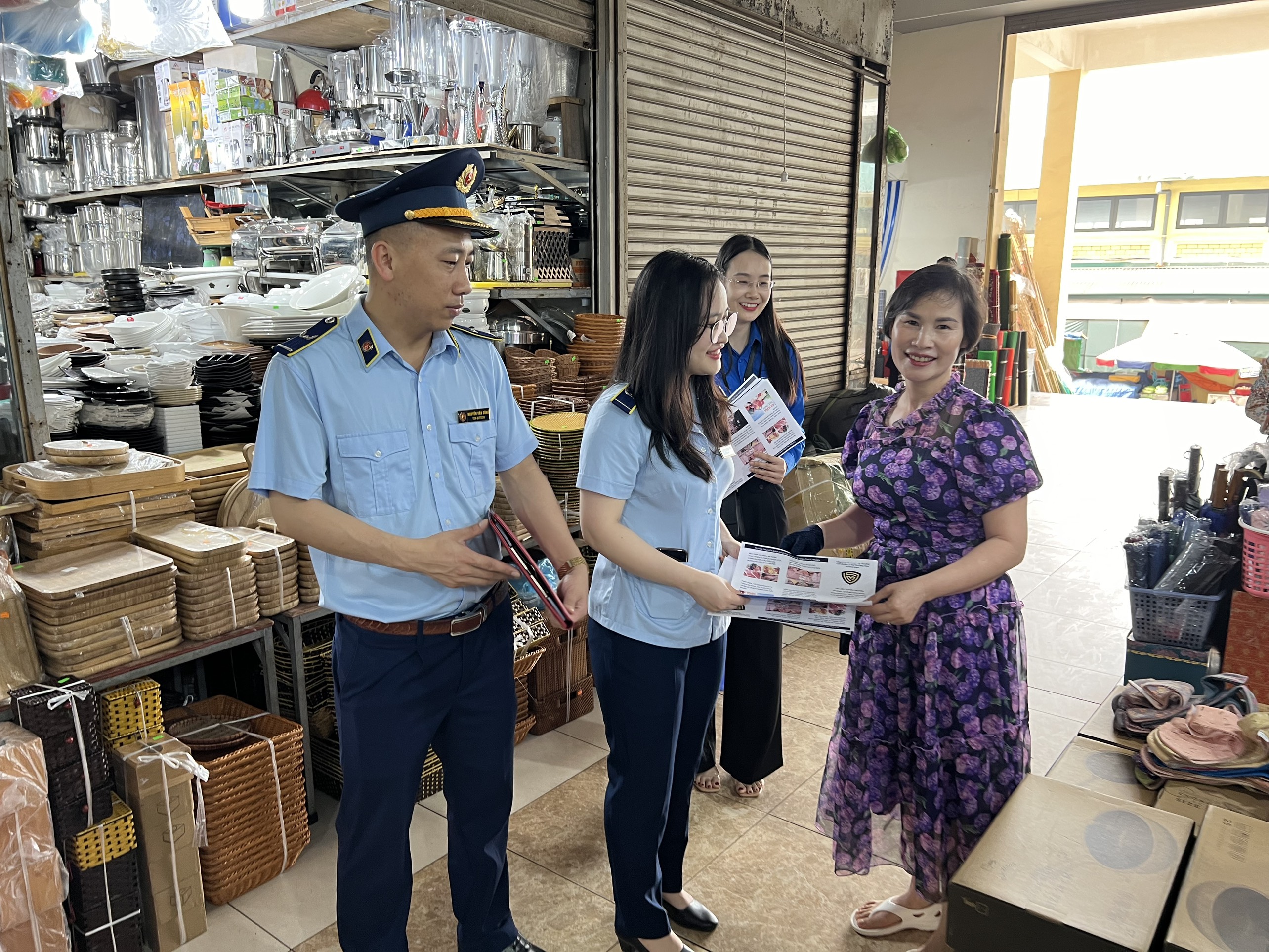 Phát tờ rơi tuyên truyền pháp luật cho các hộ kinh doanh tại Chợ Hạ Long 1
