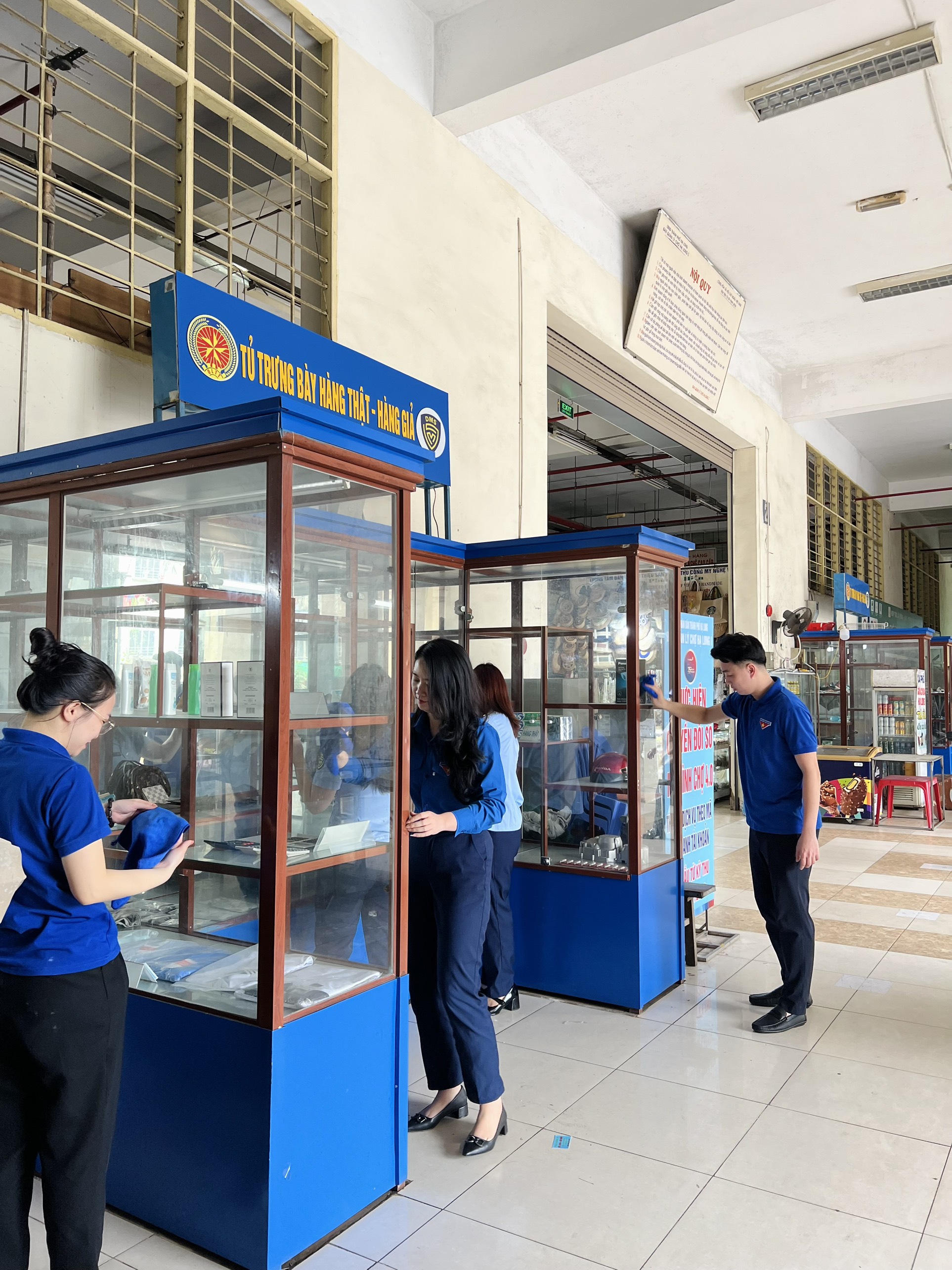 Đoàn thanh niên vệ sinh, sắp xếp Tủ trưng bày hàng thật - hàng giả tại Chợ Hạ Long 1