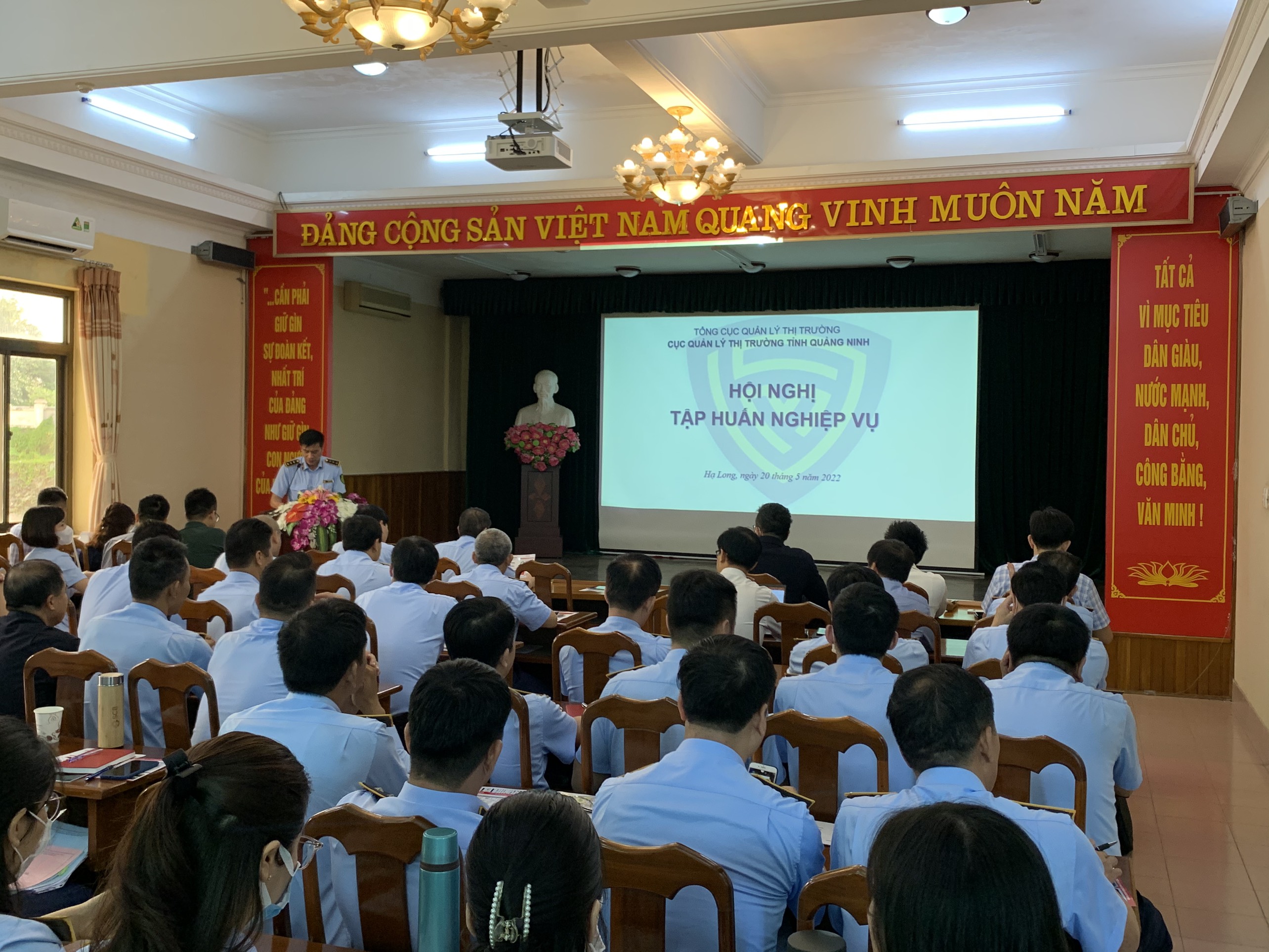 Ngày 20/5/2022, Cục Quản lý thị trường tỉnh Quảng Ninh đã tổ chức Hội nghị tập huấn nghiệp vụ chuyên sâu về phân biệt hàng thật - hàng giả và tập huấn chuyên sâu về hoá đơn điện tử với sự tham dự của 121 công chức lực lượng quản lý thị trường (QLTT) và cán bộ thuộc lực lượng Công an, Biên phòng, Hải quan.