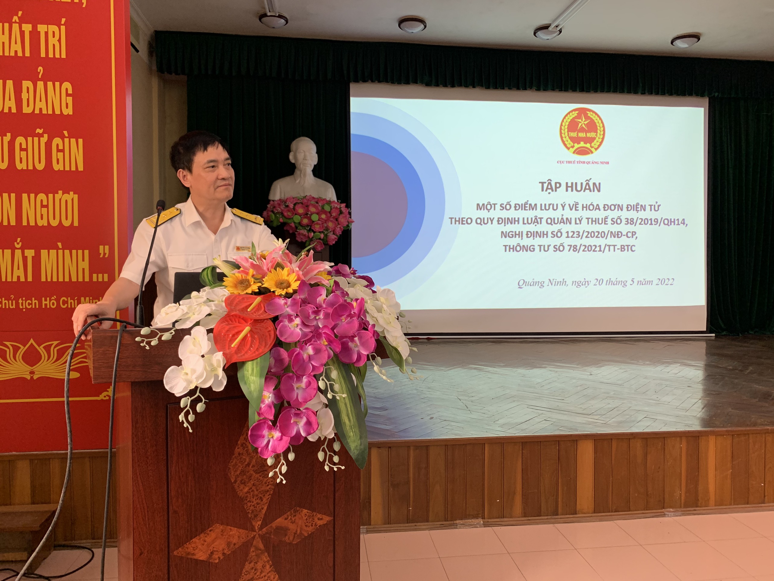 Buổi chiều ngày 20/5, Hội nghị tiếp tục với các nội dung chuyên sâu về hoá đơn điện tử với phần trình bày của các chuyên gia đến từ Cục Thuế tỉnh Quảng Ninh. Tại Hội nghị đồng chí Nguyễn Hải Đăng – Trưởng phòng Công nghệ thông tin Cục thuế tỉnh Quảng Ninh đã trình bày những nội dung chuyên sâu về hoá đơn điện tử, cách thức kiểm tra, kiểm soát, tra cứu và các nội dung liên quan tới quá trình hoạt động của lực lượng Quản lý thị trường khi Nghị định số 123/2020/NĐ-CP ngày 19/10/2020 của Chính phủ và Thông tư số 78/2021/TT-BCT ngày 17/9/2021 của Bộ Tài chính có nhiều tác động trực tiếp tới hoạt động kê khai thuế, quản lý hoá đơn bằng phương thức điện tử từ ngày 01/7/2022 tới đây.