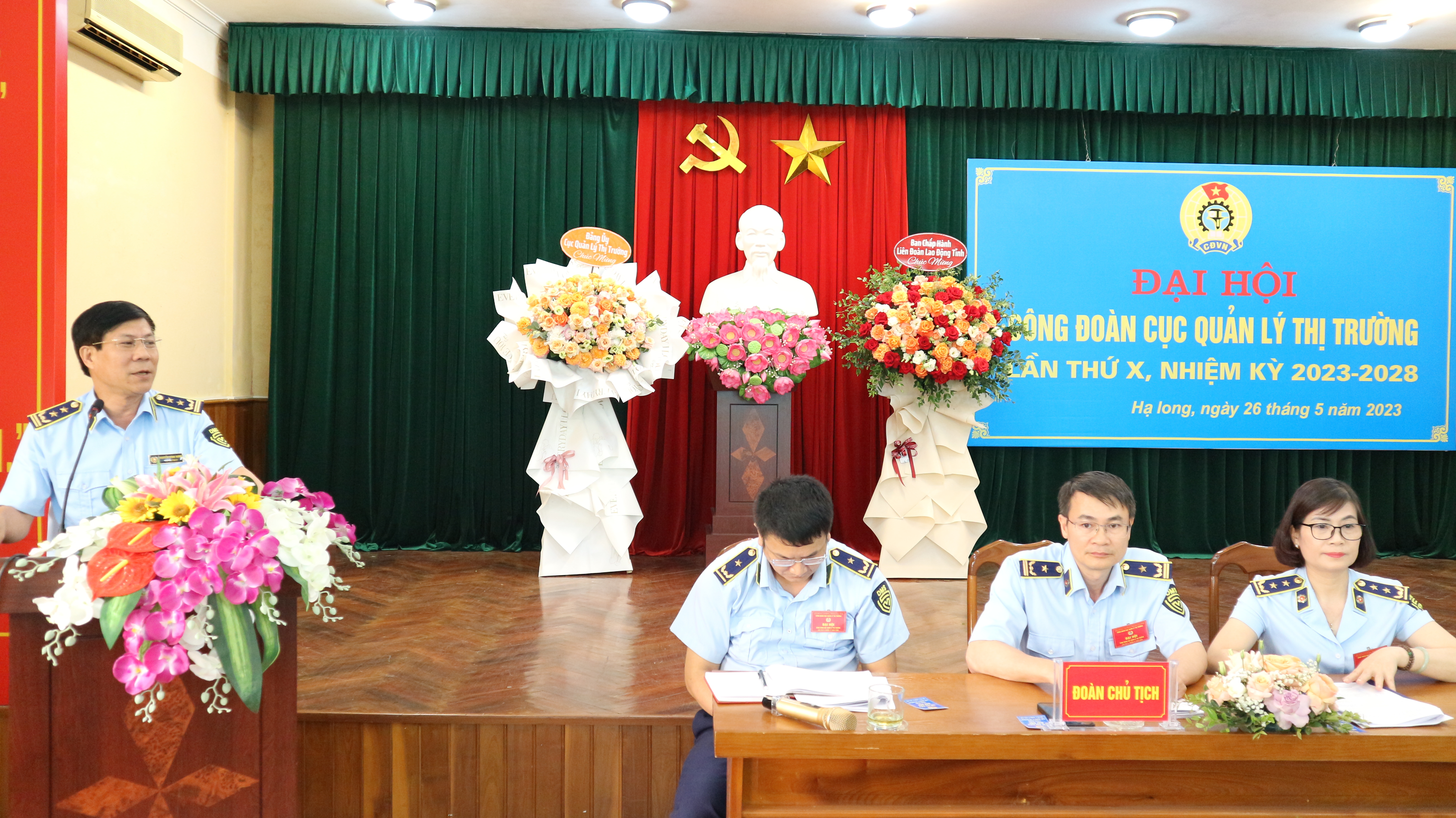 Phát biểu tại Đại hội, Đồng chí Tô Xuân Thao Chủ tịch Liên đoàn lao động tỉnh đánh giá cao và biểu dương sự nỗ lực, cố gắng của Công đoàn Cục Quản lý thị trường đã đạt được trong nhiệm kỳ vừa qua. Trong thời gian tới, Liên đoàn lao động tỉnh đề nghị Công đoàn Cục Quản lý thị trường tiếp tục làm tốt công tác quán triệt các Nghị quyết của Đảng, chính sách pháp luật của Nhà nước, các nhiệm vụ trọng tâm của tỉnh và Bộ, ngành giao bám sát nhiệm vụ chính trị của cơ quan; làm tốt công tác chăm lo, bảo vệ quyền hợp pháp chính đáng của người lao động thông qua việc tham gia xây dựng các quy chế nội bộ; tổ chức tốt các phong trào thi đua, yêu nước, đẩy mạnh phong trào thi đua....