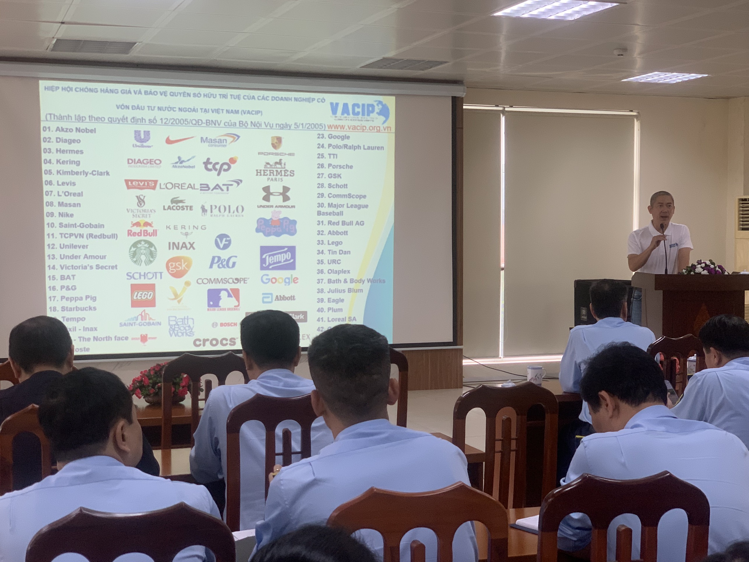 Bên cạnh đó, Hội nghị còn được đại diện các chủ thể quyền thuộc Hiệp hội chống hàng giả và bảo vệ quyền sở hữu trí tuệ của các doanh nghiệp có vốn đầu tư nước ngoài tại Việt Nam (VACIP) tổ chức Hội thảo phân biệt hàng thật - hàng giả đối với 19 nhãn hiệu gồm: Tempo, Starbucks, Blum, Hermes, Saint – Gobains, Under Amour, L’oreal, Victoria Secret, Vĩnh Tường, Omo, Clear, Levi’s, Red Bull AG, Bath & body works, Lego, Bosch, Lacoste, Schott và Essity.