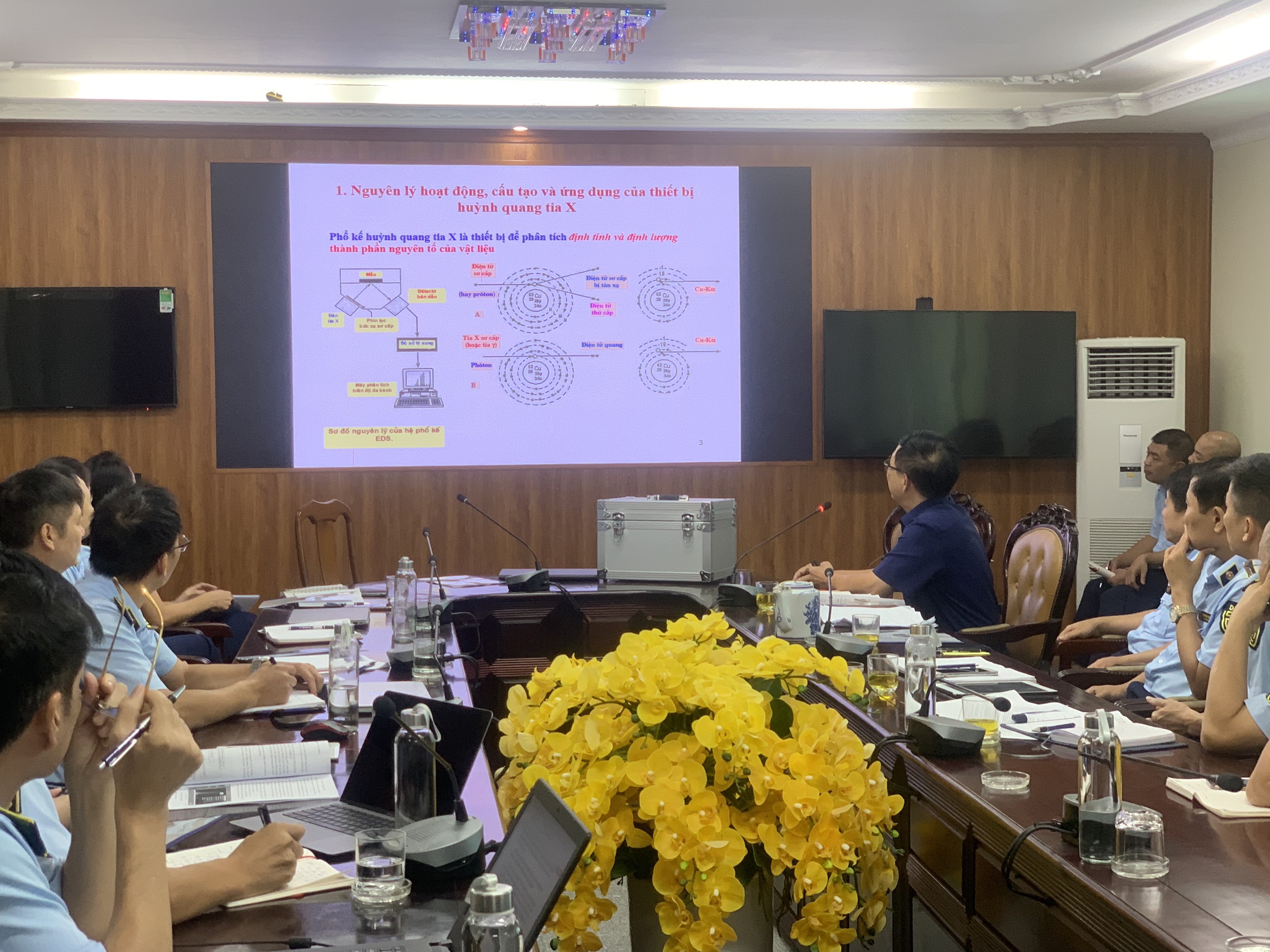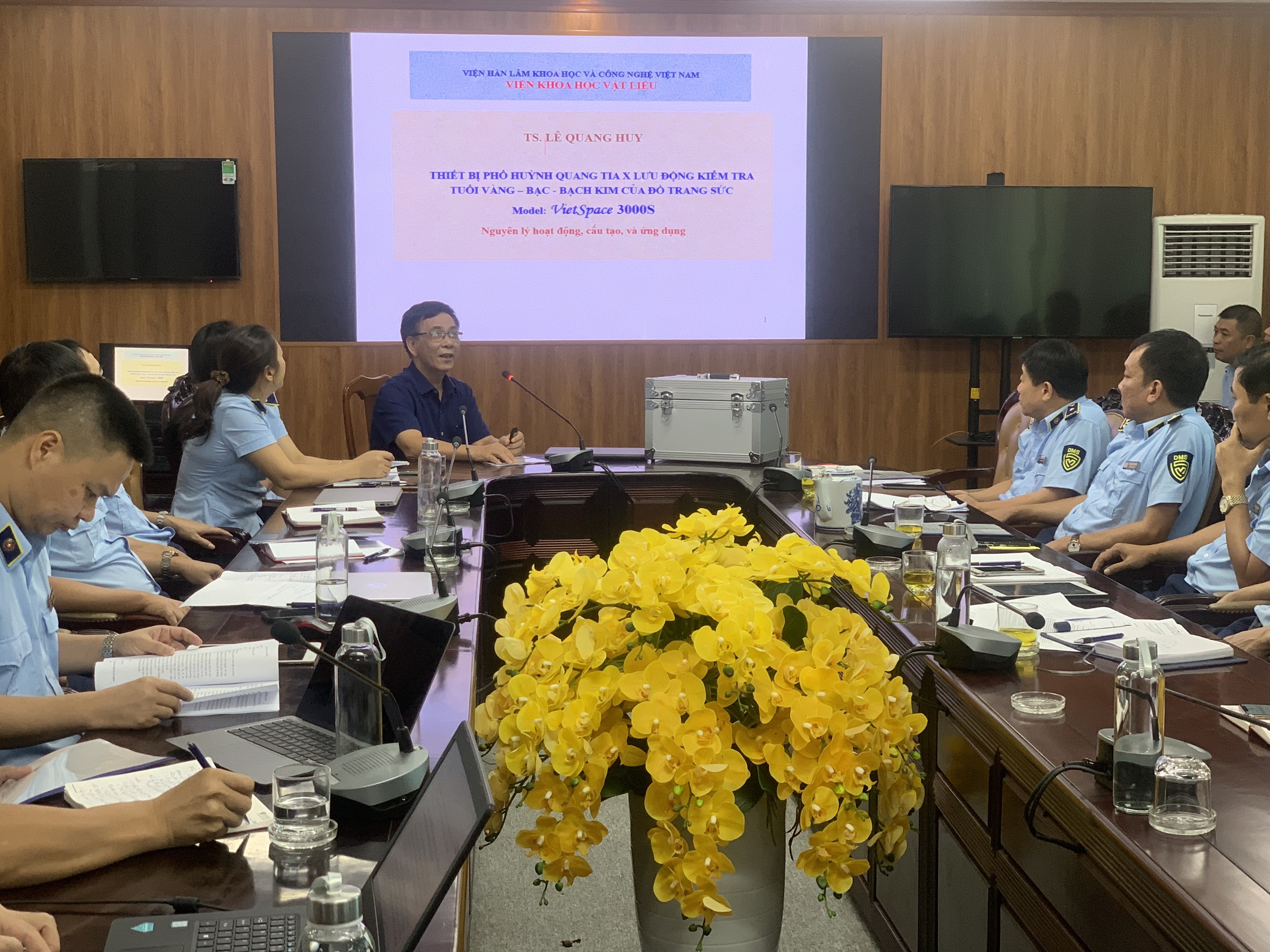 Trong khuôn khổ buổi tọa đàm, Cục Quản lý thị trường tỉnh Quảng Ninh đã mời Tiến sĩ Lê Quang Huy - Viện Khoa học vật liệu, Viện Hàn lâm Khoa học và Công nghệ Việt Nam tập huấn sử dụng thiết bị huỳnh quang tia X lưu động để kiểm tra chất lượng vàng, bạc, kim loại quý…và phổ biến kiến thức chuyên sâu đối với các sản phẩm được làm bằng kim loại quý, cách nhận biết, phân biệt kim loại quý và kiểm tra, sử dụng mẫu trong quá trình triển khai kiểm tra, xử lý vi phạm hành chính đối với các sản phẩm được làm từ kim loại quý.