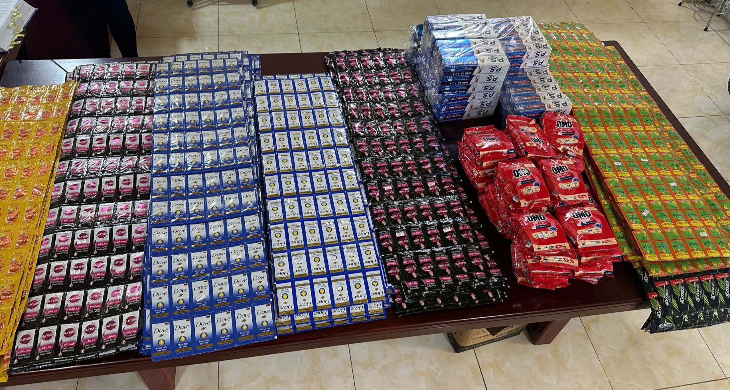 Kết quả khám phương tiện phát hiện 5.771 sản phẩm là dầu gội, dầu xả, bột giặt, kem đánh răng mang nhãn hiệu Sunsilk, Dove, OMO, P/S, Rejoice, X-MEN, có đặc điểm của hàng hóa giả mạo nhãn hiệu. Toàn bộ số hàng hoá trên được ông N.V.L mua trôi nổi trên thị trường, không có hóa đơn chứng từ kèm theo; vận chuyển từ tỉnh Bắc Ninh vào địa bàn các xã vùng sâu, vùng xa để tiêu thụ.